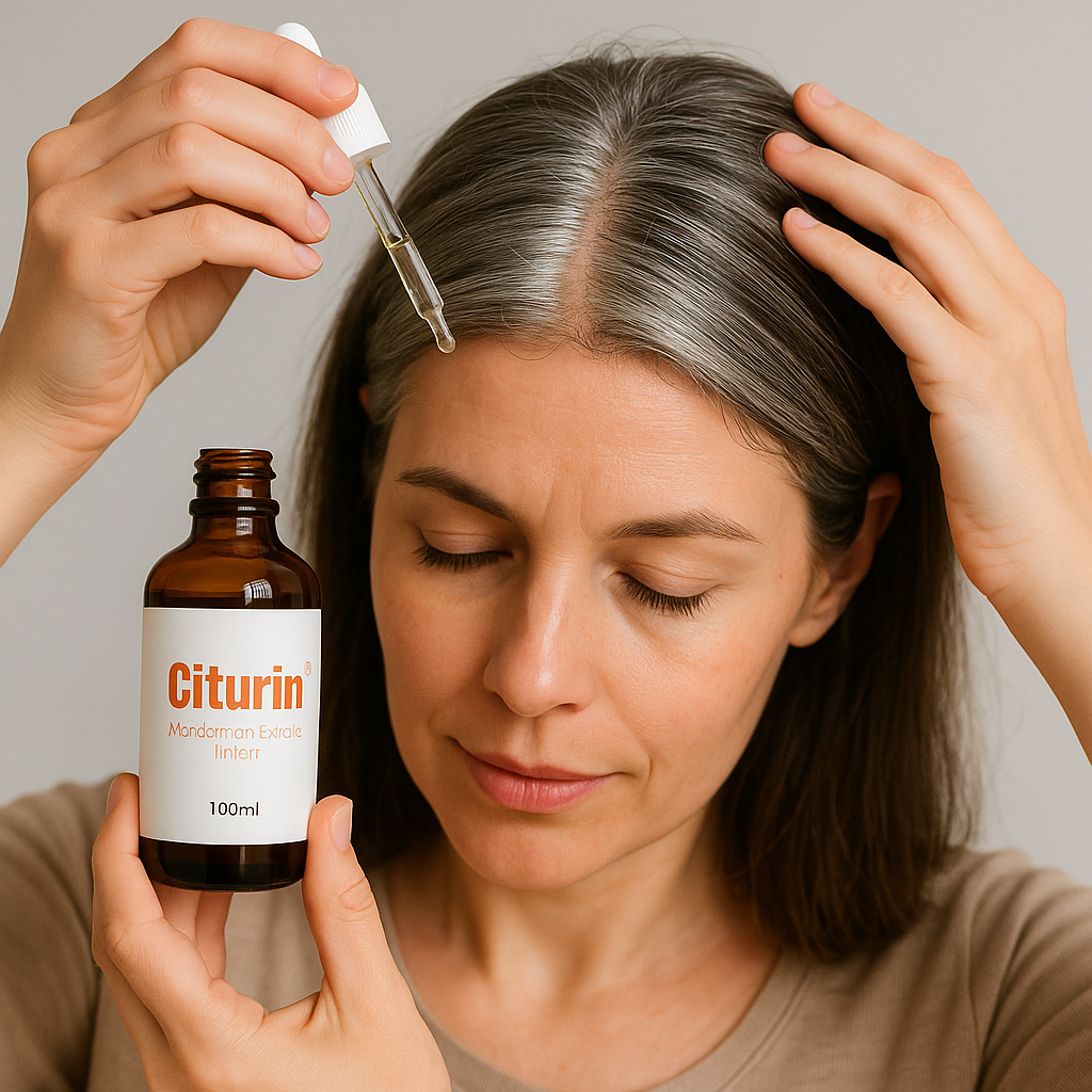 Citurin® ist eine innovative Haarpflege-Tinktur mit natürlichem Tangerinen-Extrakt, entwickelt zur Unterstützung der Haarpigmentierung. Die einzigartige Rezeptur wirkt gezielt gegen graue Haare, fördert gesünderes Haarwachstum und verleiht dem Haar sichtbar mehr Glanz und Vitalität – ganz ohne aggressive Inhaltsstoffe.